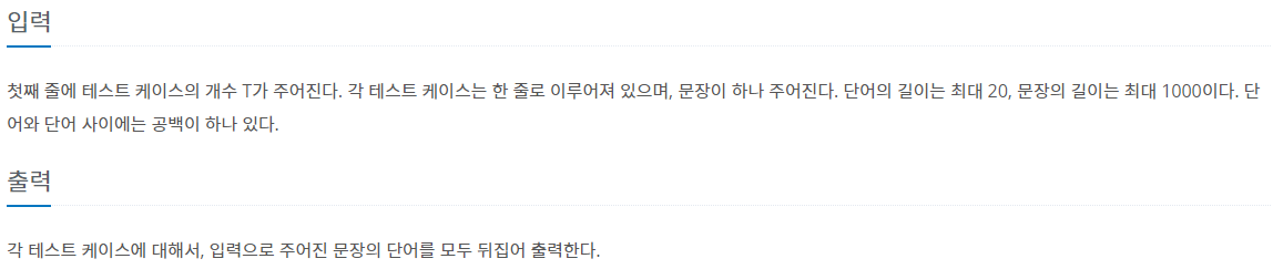 9093번: 단어 뒤집기