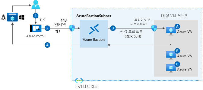 - Azure Bastion 서브넷과 동일한 가상 네트워크에 있는 모든 VM에 연결할 수 있음.