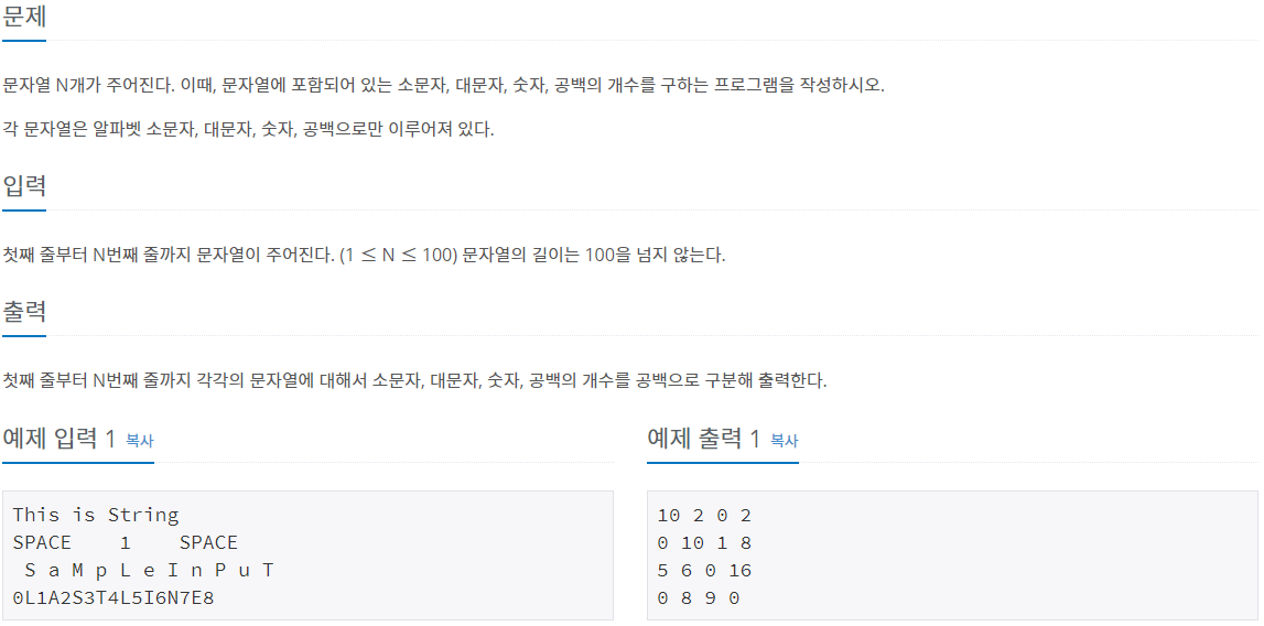 10820번: 문자열 분석